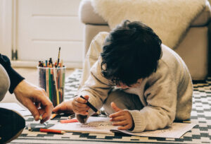 Kind kleurt samen met ouder